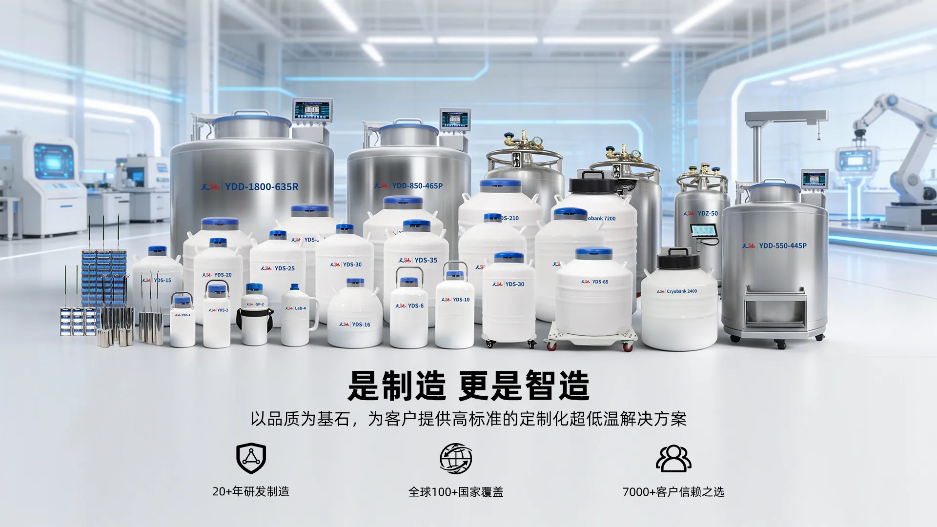 我们不是贸易商,是拥有完整供应链与先进产能的源头工厂,二十年来,我们只专注一件事:做好每一个液氮罐,始终致力于研发可靠且创新的低温存储解决方案。我们的产品已赢得全球100多个国家和地区的信赖,每一台出厂的产品,都遵循严苛的ISO及CE标准,在全球生物样本库、生物制药、体外受精诊所和动物保健行业,被信赖选择。我们提供的一切保障,源于对全链路的自主掌控,对标国际一线关键参数,价格仅为45%,为您提供超高性价比与深度服务。
